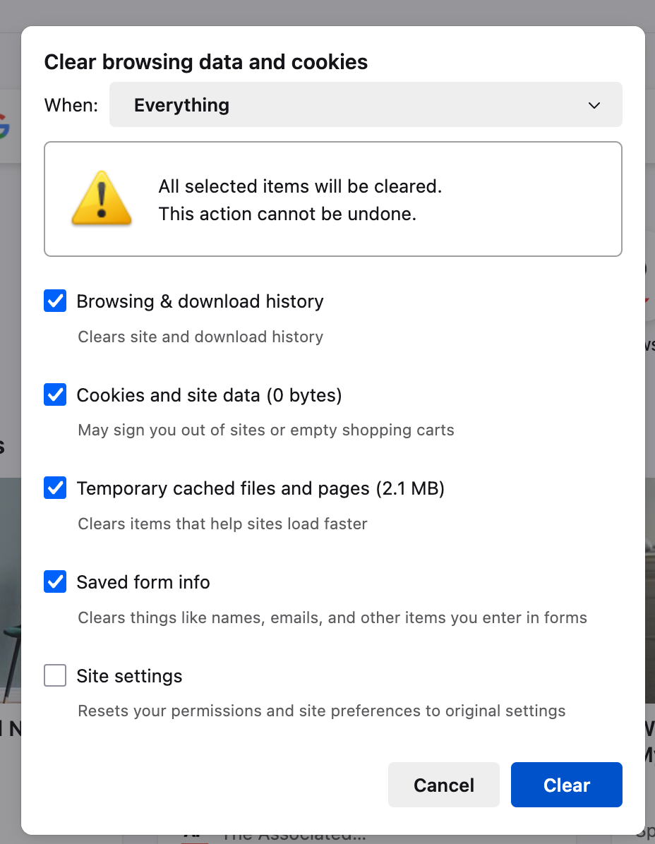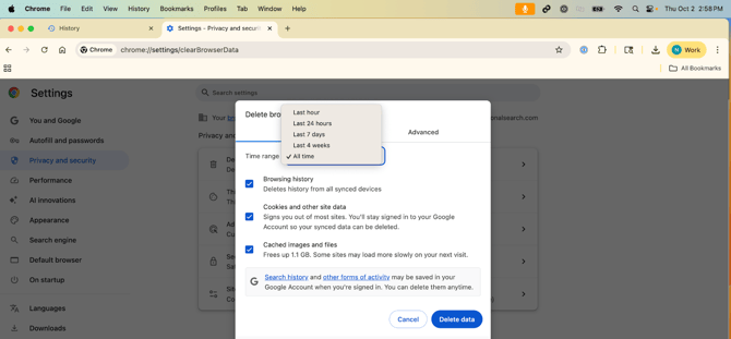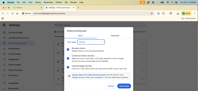 This may take a few minutes to process, depending on how long ago you last cleared your browser history. It will notify you once complete.