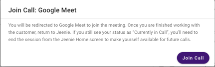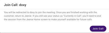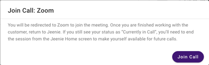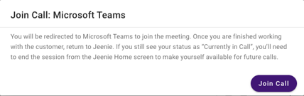 Click on “Join Call” in the Jeenie App. This will automatically redirect you to the appropriate platform.