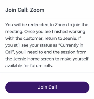 Click on “Join Call” in the Jeenie App. This will automatically redirect you to the appropriate platform.
