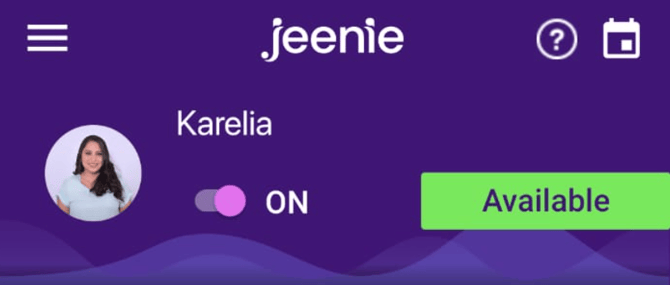 The Jeenie App tracks your availability and connection. Not being logged in to the Jeenie App means you won’t receive any calls.
